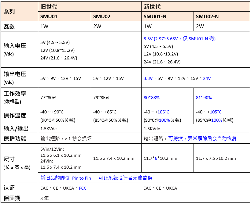 為讓用戶對(duì)于新舊品規(guī)格差異能快速了解與選型,詳如下表請(qǐng)參考: